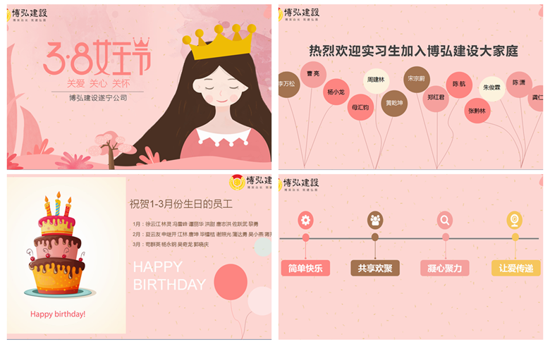 三月,乍暖還寒中,陽光一天天明媚起來,隨處彌漫著濃濃的春意,在這生機盎然的時節(jié)里,三·八女神節(jié)如約而至,為感謝大家的的辛勤付出,共慶節(jié)日,博弘建設(shè)遂寧公司開展了主題為“簡單快樂,共享歡聚,凝心聚力,讓愛傳遞”的全員歡聚活動。本次活動主要圍繞著“三八女神節(jié)”、“實習(xí)生迎新會”、“第一季度生日會”三大主題展開,各個環(huán)節(jié)都給...